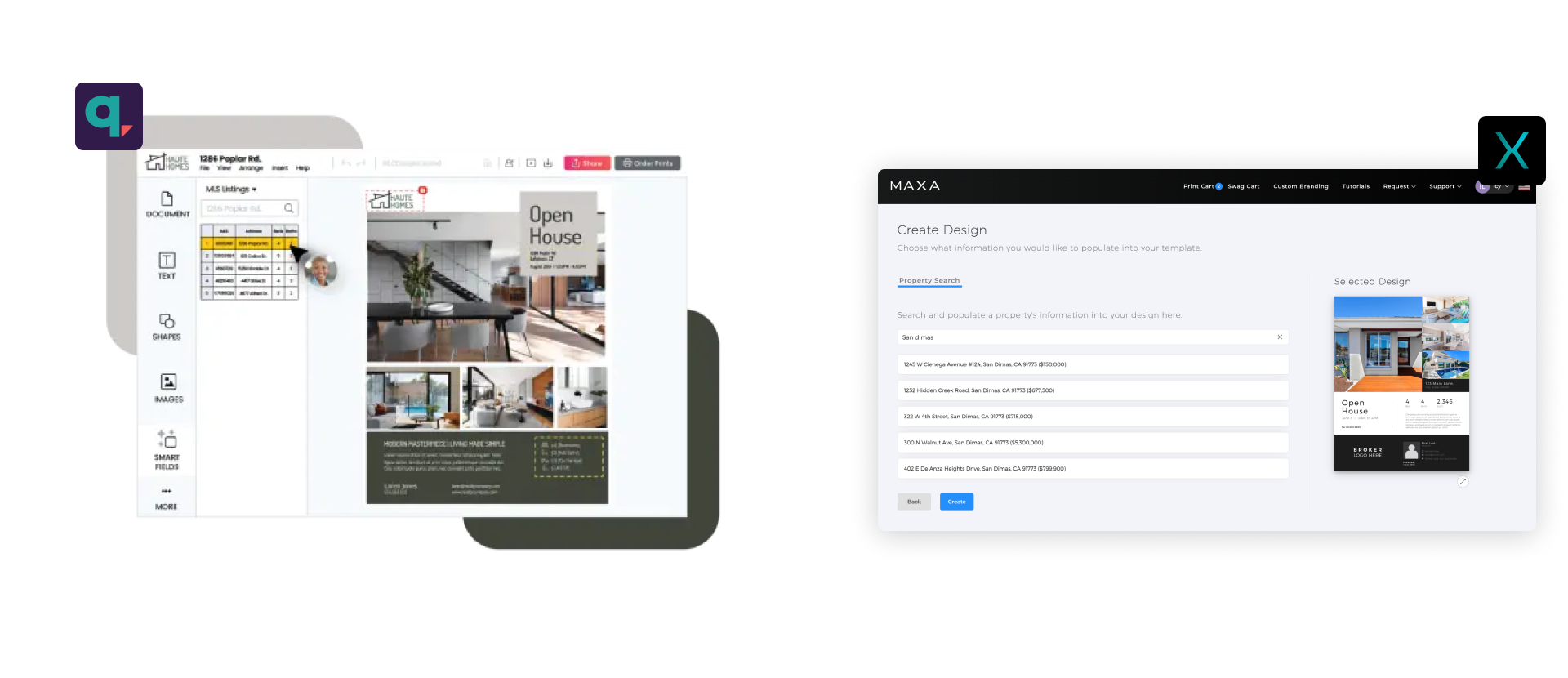 On the other hand, MAXA is a robust design platform specifically designed for the real estate and mortgage industries. Through its specific real estate design features, including the creation of different templates with direct MLS property data integration and market stats, automated creation of custom designs, third-party app integrations, and web-to-print services, MAXA becomes the only design and marketing tool professionals need.