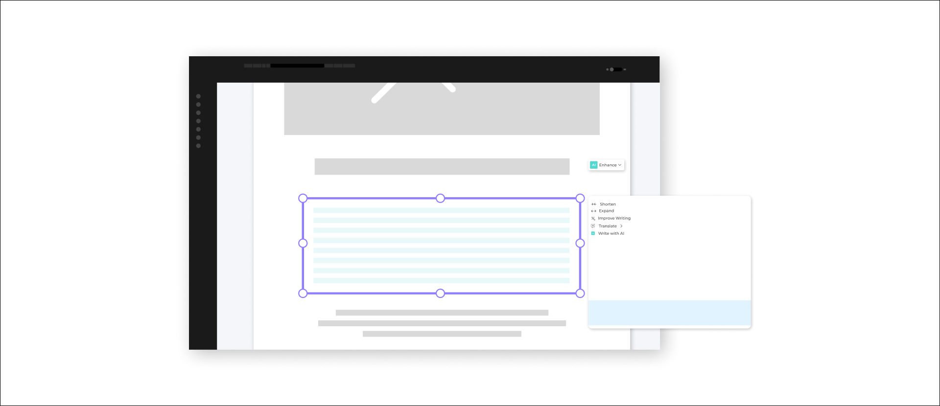 For content creation, AI-powered text suggestions can help you generate listing descriptions, social headlines, and even email subject lines in seconds. This saves time for agents while helping marketing staff maintain consistency in tone and messaging. Beyond copywriting, AI is also changing how templates adapt. For example, imagine a system that recognizes an agent's persona, their market, or the type of property they're listing, and automatically surfaces the most effective layouts and formats.