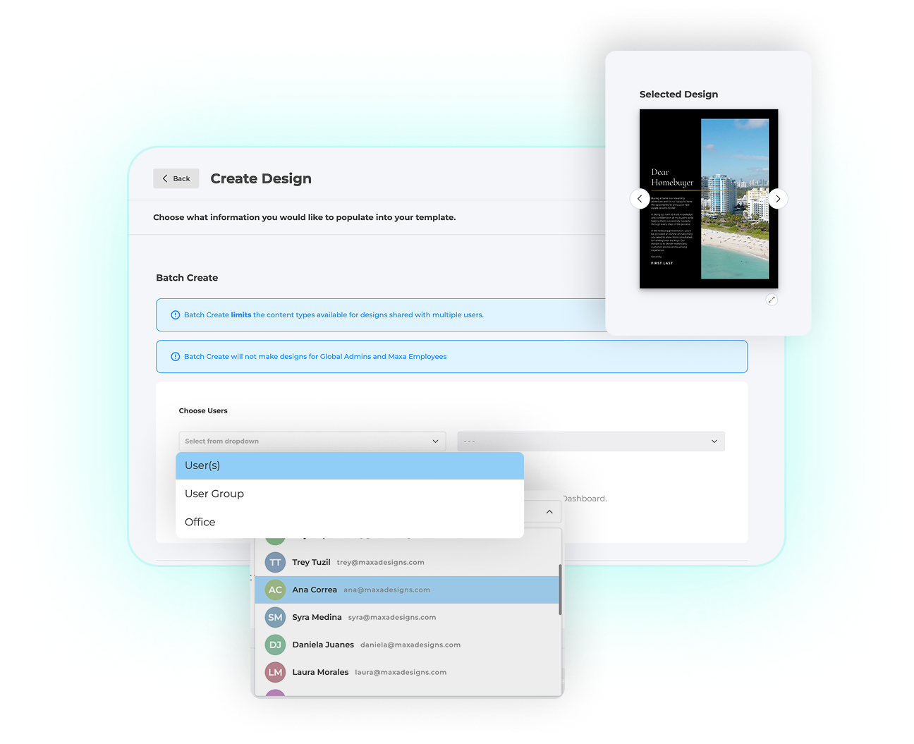 MAXA has always focused on empowering marketing admins to templatize their designs with lockable elements and industry data integration. Now we take it to the next level by using our platform to automatically bulk create marketing.